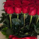 Мини Поп Ред_ Валентайн Премиум 25 красных роз стоячая подарочная коробка-композиция