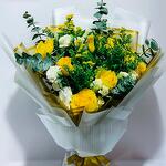 Добавьте яркой элегантности в любой праздник с этим сияющим букетом, наполненным яркими жёлтыми розами и пышной зеленью. Эта цветочная композиция, окутанная нежными белыми и золотистыми акцентами, идеально подойдёт для того, чтобы скрасить чей-то день или отметить радостное событие. Гармоничное сочетание цветов и листвы создаёт тепло и свежесть, добавляя изысканный штрих в любую обстановку. Идеально подходит для дней рождения, поздравлений или просто потому, что этот букет – символ счастья и жизненной силы. Храните его в прохладном месте, вдали от прямых солнечных лучей, чтобы он дольше оставался красивым. Подрезайте стебли и меняйте воду каждые 2 дня, чтобы букет дольше оставался свежим. Эта композиция гармонично сочетает в себе очарование и изысканность. Изображение является ориентировочным. Форма и дизайн фактического товара могут отличаться в зависимости от наличия. Цветы могут быть доставлены в полностью распустившемся, полураспустившемся виде или в стадии бутона. Выбранное время доставки является приблизительным и зависит от наличия товара и места назначения. Поскольку цветы по своей природе являются скоропортящимся продуктом, мы сможем доставить ваш заказ только один раз. Доставка не может быть перенаправлена на другой адрес. Этот товар доставляется лично и не будет доставлен вместе с курьерской доставкой. Иногда требуется замена цветов из-за временных и/или региональных проблем с доставкой.