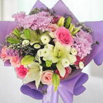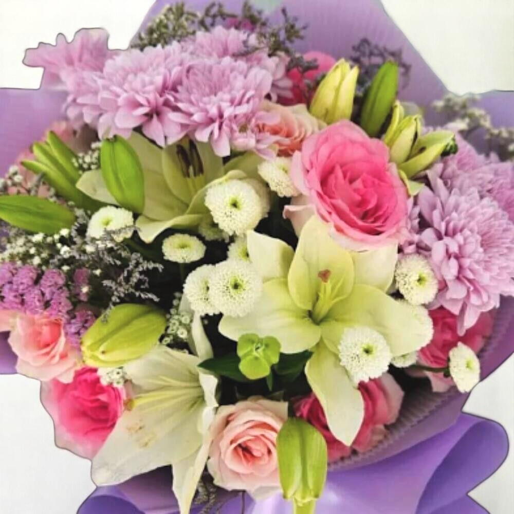 Этот нежный букет — идеальное сочетание мягкой элегантности и пастельного очарования. В него входят лилии, хризантемы, спрей-розы и сантини, которые создают нежную и поднимающую настроение композицию. Упакованный в бумагу лилового тона и перевязанный сатиновой лентой, он идеален для особых моментов, таких как дни рождения, или просто чтобы выразить признательность. Для наилучшего результата держите букет в прохладном месте с рассеянным светом, обновляйте воду ежедневно и подрезайте стебли каждые два дня, чтобы сохранить свежесть.