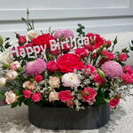 Experience the radiant charm of our Florists Special bouquet. This exquisite blend features six splendid stems of Fusia carnations, immediately catching the eye with their vibrant hue. A quartet of Pong Ping in charming pink adds a delicate touch, while a generous serving of ten pink Baby Roses infuses the arrangement with classic romance. Equally elegant are the addition of ten Fusia Baby Roses, their stunning color creating mesmerizing contrast. Nestled among such rich blooms, the abundance of twenty pieces of lush greenery provides a refreshing burst of nature. Altogether, an alluring harmony of colors and textures sure to enchant any flower lover’s heart.