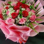Red rose - 10 шт. Pink rose - 10 шт. ruscus israel - 7 шт. gipsofila - 7 шт.