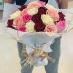 24 микса роз в букете и красивой картонной упаковке