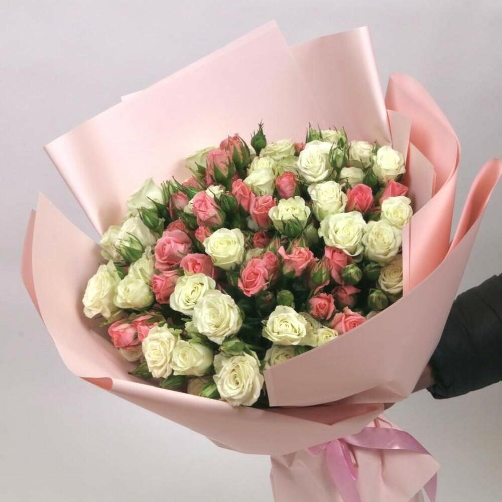 Этот нежный и романтичный букет из нежных кустовых роз нежно-розового и кремово-белого оттенков создаёт мечтательную и элегантную атмосферу. Цветы упакованы в нежную пастельно-розовую бумагу и перевязаны атласной лентой для изысканного эффекта. Чтобы букет дольше оставался свежим, держите его в свежей воде, подрезайте стебли по диагонали каждые два дня и храните в прохладном месте, вдали от прямых солнечных лучей и сквозняков. Этот букет идеально подходит для особых случаев, таких как дни рождения, годовщины или любые другие трогательные события. Он превзойдёт все ожидания и станет осязаемым проявлением любви. Подарите его на день рождения, поздравьте с годовщиной свадьбы, пожелайте скорейшего выздоровления или просто пожелайте близкому человеку момент любви.