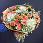 Ribbon - 1 шт. Chrysanthemum - 3 шт. Wrapping - 5 шт. мини-розы - 7 шт.