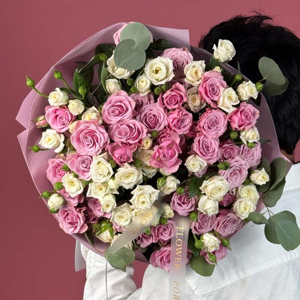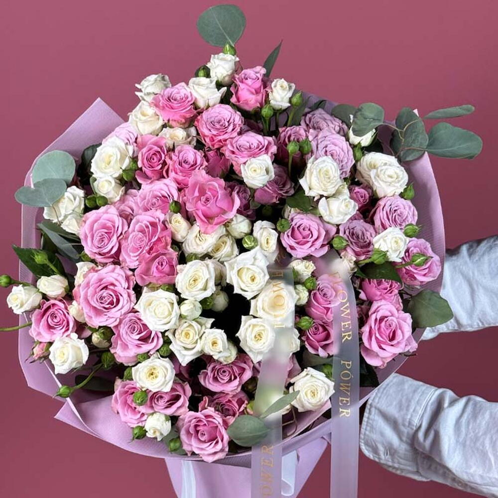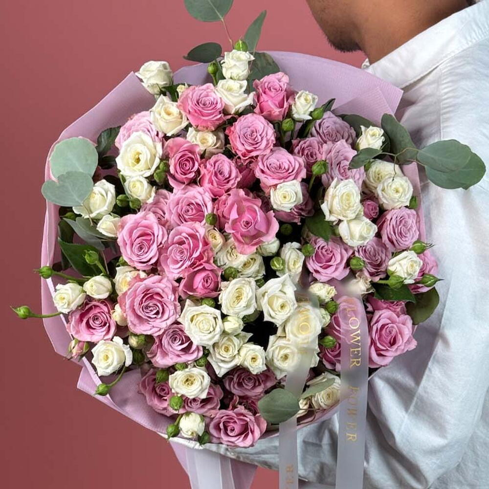 Мисти Пинк: букет розовых и белых кустовых роз
