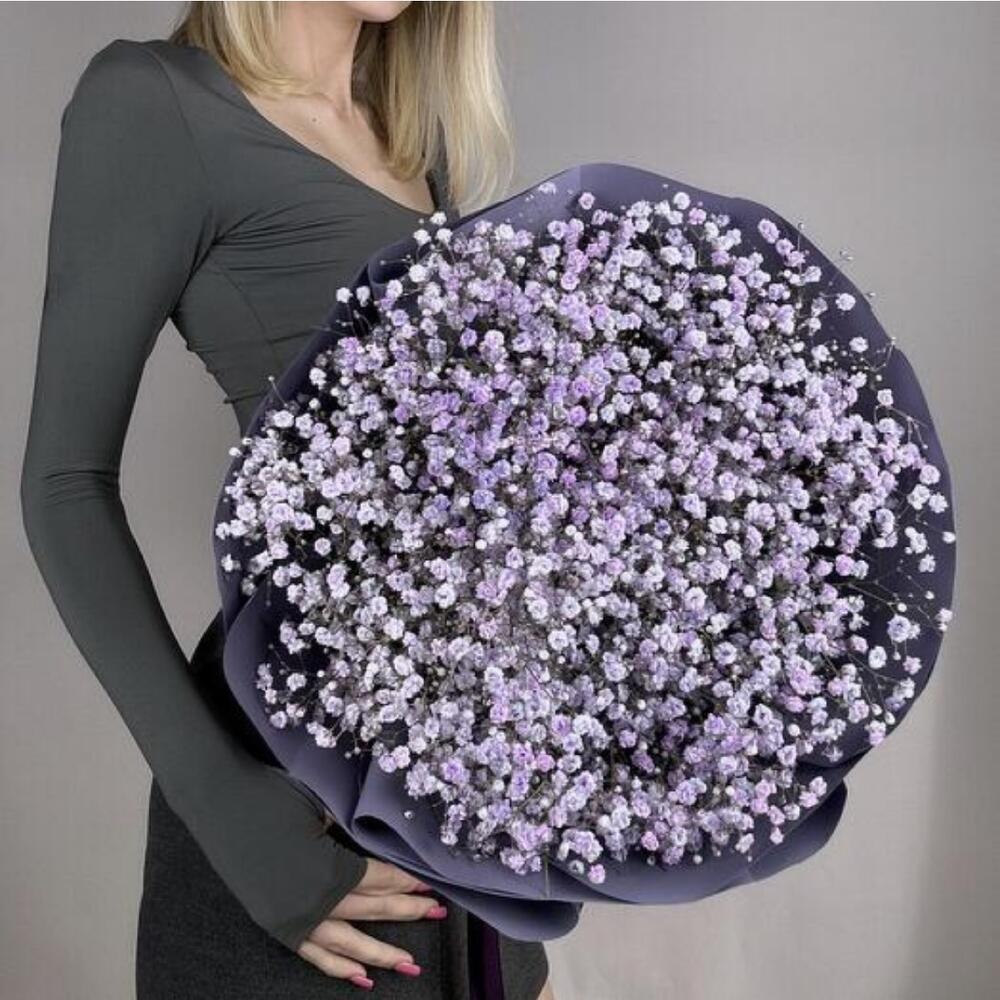 Ribbon - 1 шт. wrapping paper - 3 шт. фиолетовая окрашенная гипсофила - 25 шт.