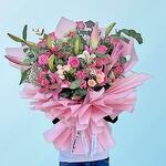 Eucalyptus - 5 шт. Pink rose - 10 шт. Gypsophila - 3 шт. розовая мини-роза - 5 шт. розовые лилии - 5 шт. милая Сара Бэби Роуз - 5 шт.