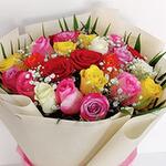 Ribbon - 1 шт. Wrapping - 3 шт. Leaves - 5 шт. mixed rose - 25 шт. gypso - 3 шт.