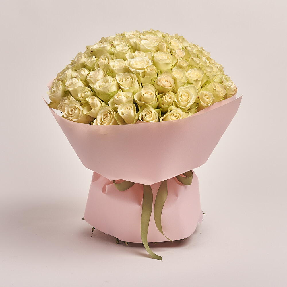 Этот эффектный моно-букет состоит ровно из 101 снежно-белой розы. Каждый бутон был тщательно отобран за чистоту и совершенство, превращая букет в изысканный знак привязанности. Это опьяняющее сочетание простоты и величия — дар, который наверняка оставит неизгладимое впечатление.