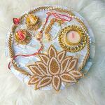 Отпразднуйте священную связь Ракша Бандхан с этим элегантным перламутровым набором подносов. Оформлен сложной детализацией и золотым мотивом лотоса, поднос — красивое памятное изделие, придающее торжественность праздничным ритуалам. В комплекте — набор рахи с роли тика и декоративная свеча-теалайт, что делает его готовым к использованию как тхали для Ракхи. Продуманно выполненный, он сочетает традиции с роскошью, поэтому подходит не только для проведения ритуалов, но и как идеальный праздничный подарок. Чтобы сохранить блеск, аккуратно протрите мягкой сухой тканью после использования. Вневременное изделие, приносящее благословения, любовь и элегантность в празднование. 🌸✨