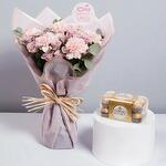 Ferrero rocher - 16 шт. светло-розовые гвоздики - 7 шт. purple spray roses - 6 шт.