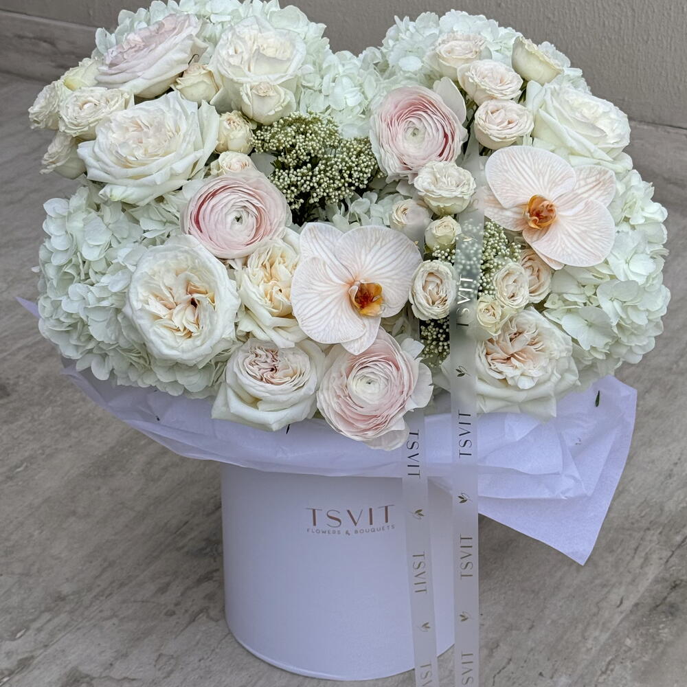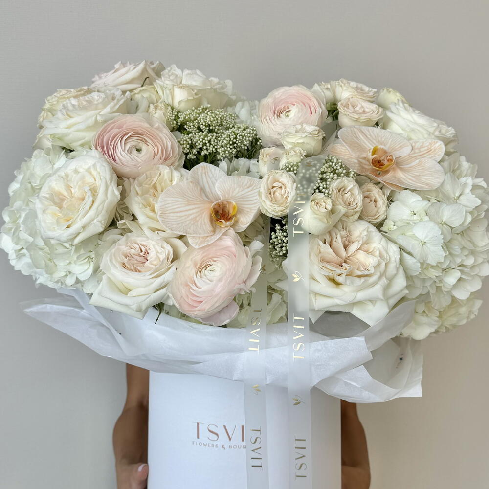 Hydrangea - 9 шт. bombastic - 4 шт. ranunculus - 3 шт. ozothamnus - 4 шт. rose ohara - 7 шт. phanelopsis orkide - 2 шт.