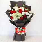 Отпразднуйте особые моменты или национальную гордость этим элегантным букетом, связанным вручную и вдохновленным цветами флага Объединенных Арабских Эмиратов. Композиция, упакованная в гладкую черную бумагу и украшенная праздничной трехцветной лентой красного, белого и зеленого цветов, идеально подойдет для Национального дня ОАЭ, патриотических мероприятий или значимых праздников. Этот букет, сочетающий в себе яркие красные розы, нежные белые лизиантусы и нежно-зеленые хризантемы, воплощает в себе элегантность и энергетику в одном изысканном дизайне. Идеально подходит для подарка или украшения дома или офиса. Инструкция по уходу: Чтобы букет дольше оставался свежим, подрежьте стебли по диагонали примерно на 1–2 см и поставьте букет в чистую вазу, наполненную прохладной водой. Держите цветы вдали от прямых солнечных лучей, источников тепла и сквозняков. Меняйте воду каждые 1–2 дня и удаляйте все листья ниже уровня воды, чтобы предотвратить появление бактерий. Не размещайте букет рядом со спелыми фруктами. По возможности оставьте на ночь в прохладном месте.