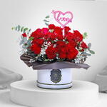 The Box s — гармоничное сочетание красоты и элегантности. Эта изысканная композиция объединяет нежную прелесть мини-роз, неувядающее очарование классических роз и свежий, ароматный акцент листьев эвкалипта.