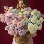 Hydrangea - 20 шт. rose - 75 шт. ranunculus hanoi - 5 шт. asparagus fern - 1 шт. piony rose - 10 шт.