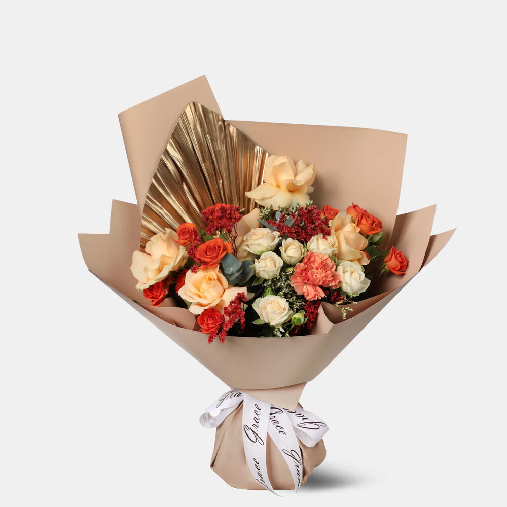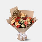 Limonium - 1 шт. dried flowers - 2 шт. carnation - 1 шт. букет роз в брызгах - 2 шт. персиковые розы - 4 шт.