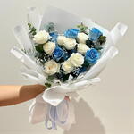 Впустите в дом безмятежное очарование моря и неба с нашим букетом OceanBreeze – композицией ручной работы, состоящей из 9 классических белых роз и 9 ярких голубых кустовых роз. Свежие белые цветы символизируют чистоту и новое начало, а прохладные голубые розы – спокойствие, глубину и нотку современного стиля. Вместе они создают идеально сбалансированную палитру безмятежности и стиля. Символическая гармония: Белые розы шепчут об искренности и изяществе; синие розы – о покое, воображении и волшебстве неожиданного. Премиальная свежесть: Стебли высшего качества, собранные на рассвете, обёрнуты влагой для более долгой жизни в вазе и обладают мягким, свежим ароматом сада. Элегантность, готовая к подарку: Упакованы в пергамент ледяного оттенка и перевязаны тёмно-синей атласной лентой – готовы к фотосессии; просто подрежьте, увлажните и наслаждайтесь. Универсальная изысканность: идеально подходит для свадеб в прибрежном стиле, знаменательных дней рождения, корпоративных мероприятий или просто для душевных сюрпризов «просто так». Экологичное прикосновение: перерабатываемая упаковка и биоразлагаемый чехол для гидратации сохранят вашу заботу о планете. Доставка в тот же день по ОАЭ: оформите заказ до 17:00, и успокаивающие оттенки океана и неба дойдут до вашего порога всего за несколько часов. Добавьте букет «Океанский бриз» в корзину прямо сейчас, и восемнадцать нежных роз превратят любое событие в момент умиротворяющей элегантности и современного очарования.