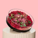 Velvet Orchid Rose Dome — это роскошное сочетание романтики и утонченности, созданное для по-настоящему особых случаев. Эта элегантная композиция включает премиальные свежие красные розы, щедро уложенные под прозрачным стеклянным куполом, создавая глубину, насыщенность и визуальную гармонию.