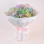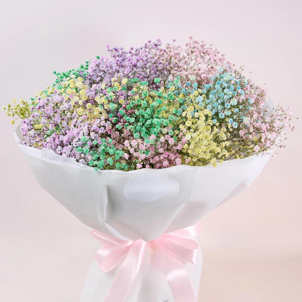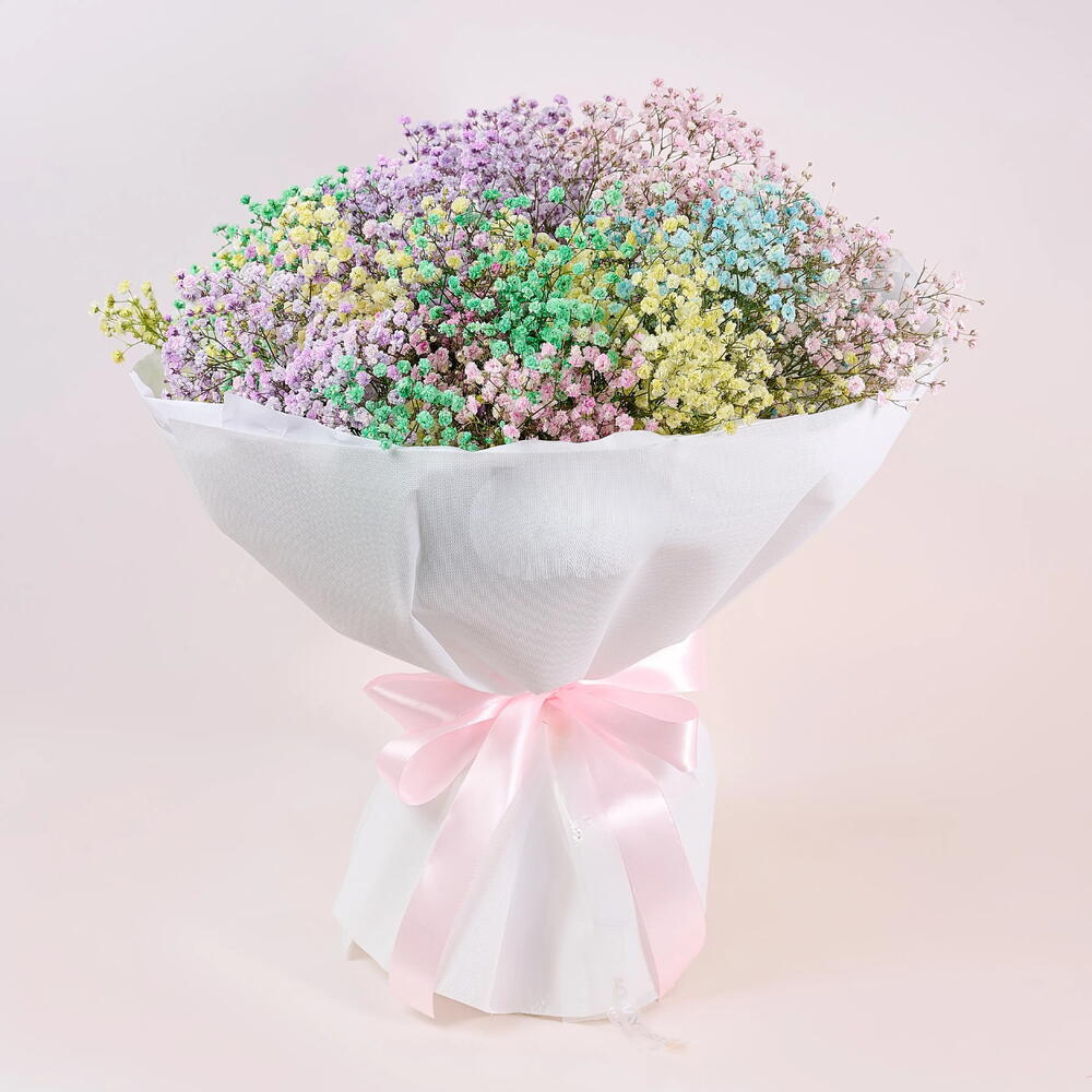 Яркая и игривая композиция, созданная, чтобы скрасить любое событие. Этот букет сочетает разноцветные соцветия гипсофилы, завернутые в хрустящую белую бумагу, создавая живую, бутиковую подачу, которая выглядит радостно и современно. Многоцветная гипсофила добавляет текстуру, глубину и причудливое очарование, в то время как белая упаковка сохраняет дизайн чистым и современным. Идеально для дней рождения, юбилеев, поздравлений или «просто так» — подарок для тех, кто любит цвет и премиальный флористический стиль. Подходит как для него, так и для неё: этот букет обеспечивает фотогеничный, эффектный и роскошный флористический опыт — радостное, красочное и стильное заявление для любого праздника.