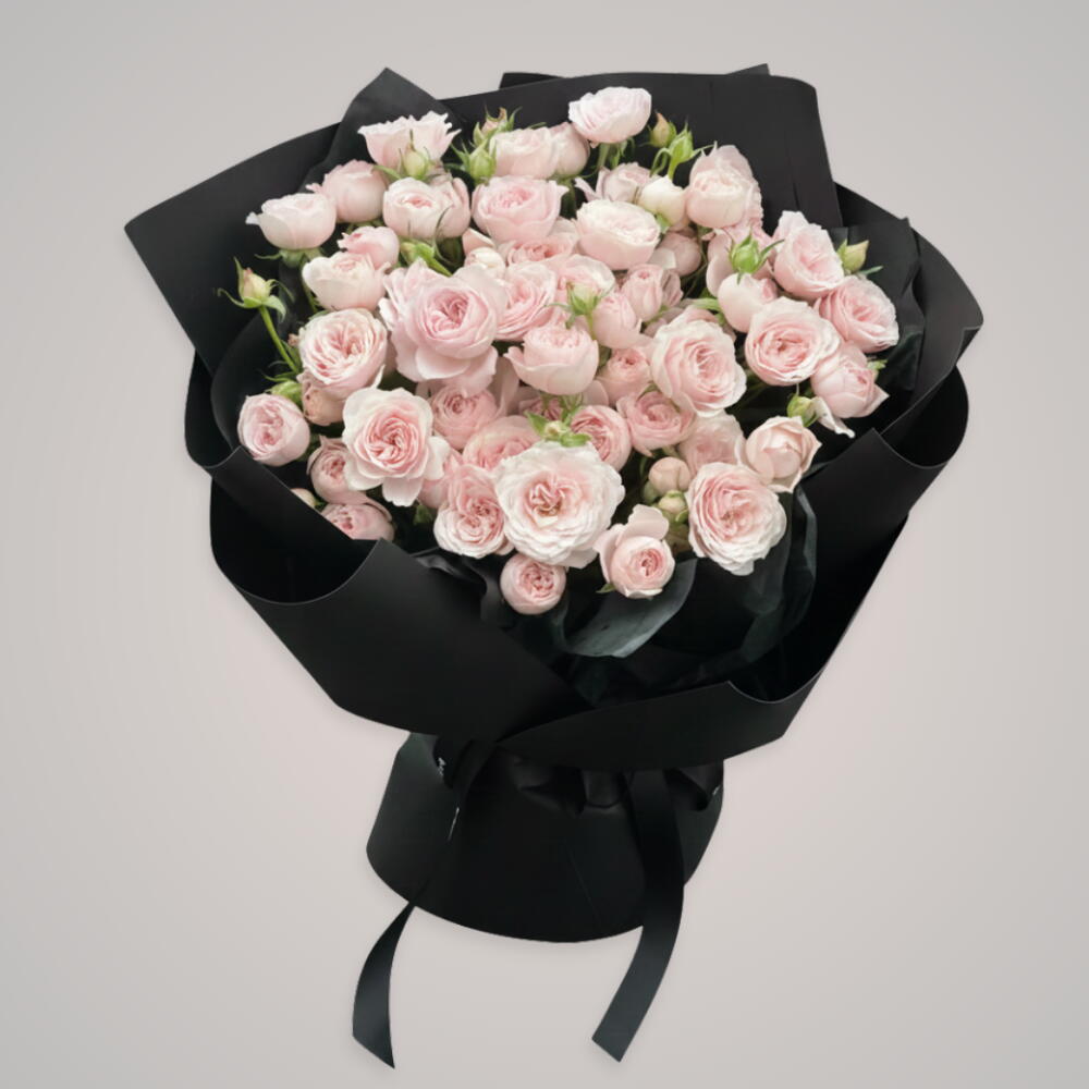 1 стебель розовой гортензии, 2 стебля розового лизиантуса, 4 стебля розовой гипсофилы