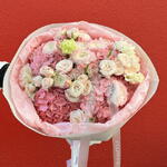 ranunculus pink - 7 шт. tulip pink - 7 шт. гортензии розовые - 4 шт. rose spray bombastic - 6 шт. светло-розовая эустома - 6 шт.