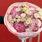 Pastel Poise: Букет из розовых гортензий, роз и эустомы