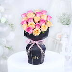 Информация о товаре: 10 персиковых роз 10 светло-розовых роз 10 зеленых рускусов В черной складной бумажной основе Элегантно перевязаны розовой нитью Информация о доставке Мы обещаем ПОДАРИТЬ ЛЮБОВЬ получателю выбранными вами цветами. Свежесть цветов гарантирована Цветочная композиция составлена так, как показано на фотографии на сайте. Гарантируем своевременную доставку в удобное для вас время Вся доставка осуществляется в фургонах с контролируемой температурой. Все натуральные продукты могут иметь небольшие отклонения в цвете. Мы обещаем подарить вам радость от подарка с помощью наших услуг