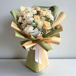 white carnations - 5 шт. peach rose - 11 шт. гипс - 1 шт. white roses - 5 шт.