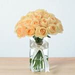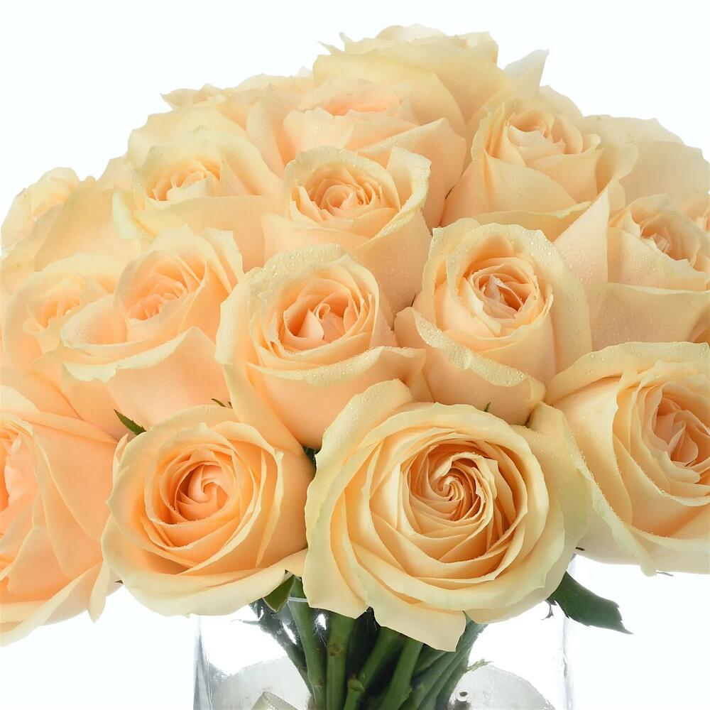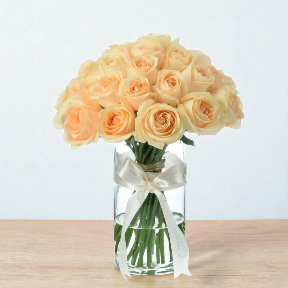 стеклянная цилиндрическая ваза - 1 шт. изысканные персиковые розы - 31 шт.