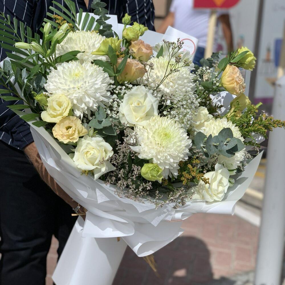 Доставили после долгих переписок. Отмечено сначала было что заказ закрыт, но не доставили. Несколько раз обещали что через 30минут, просили перейти в Whatsapp, писали что курьер перепутал и хозяин сейчас сам привезет. А потом просто загасились на полчаса и перестали отвечать. В итоге доставили, примерно в 21:30. Больше чем на 2 часа позже крайнего срока. Но конечно букет выглядел не так. Хризантемы маленькие а не большие, и ощущение испорченного праздника осталось. Деньги возвращать не надо. Но конечно магазины такого уровня сервиса портят это прекрасное приложение.