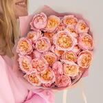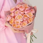 Эта завораживающая композиция включает изысканную подборку розовых пионообразных роз, известных своими пышными лепестками и нежным ароматом. Каждый цветок тщательно расположен, чтобы подчеркнуть его природную красоту и элегантность. Упакованный в изысканную дизайнерскую упаковку, этот букет идеально подходит для выражения любви, благодарности или празднования. Будь то особый случай или просто так, позвольте непреходящему очарованию этих розовых садовых роз приносить радость и изящество в любой момент.