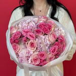 Мягкая и роскошная композиция, Peony Sorbet сочетает пушистые пудрово-розовые гортензии с сочными садовыми розами в великолепном омбре от светло-розового до глубокого фуксии. Этот потрясающий романтичный букет — высшее проявление элегантности, идеально подходит в качестве цветов на день рождения, на годовщину или для прекрасного сюрприза просто так.