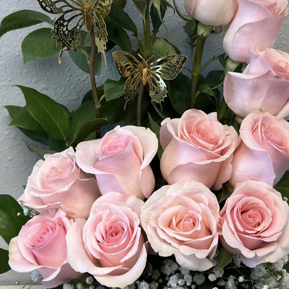 *нежно-розовый букет*, идеально подходит для романтичных, женственных или изящных композиций: