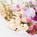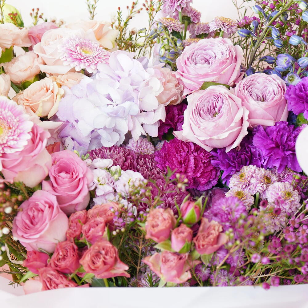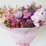 Pink phalaenopsis - 1 шт. pink Gerbera - 3 шт. pink hydrangea - 1 шт. roses - 10 шт. микс кустовых роз - 10 шт.