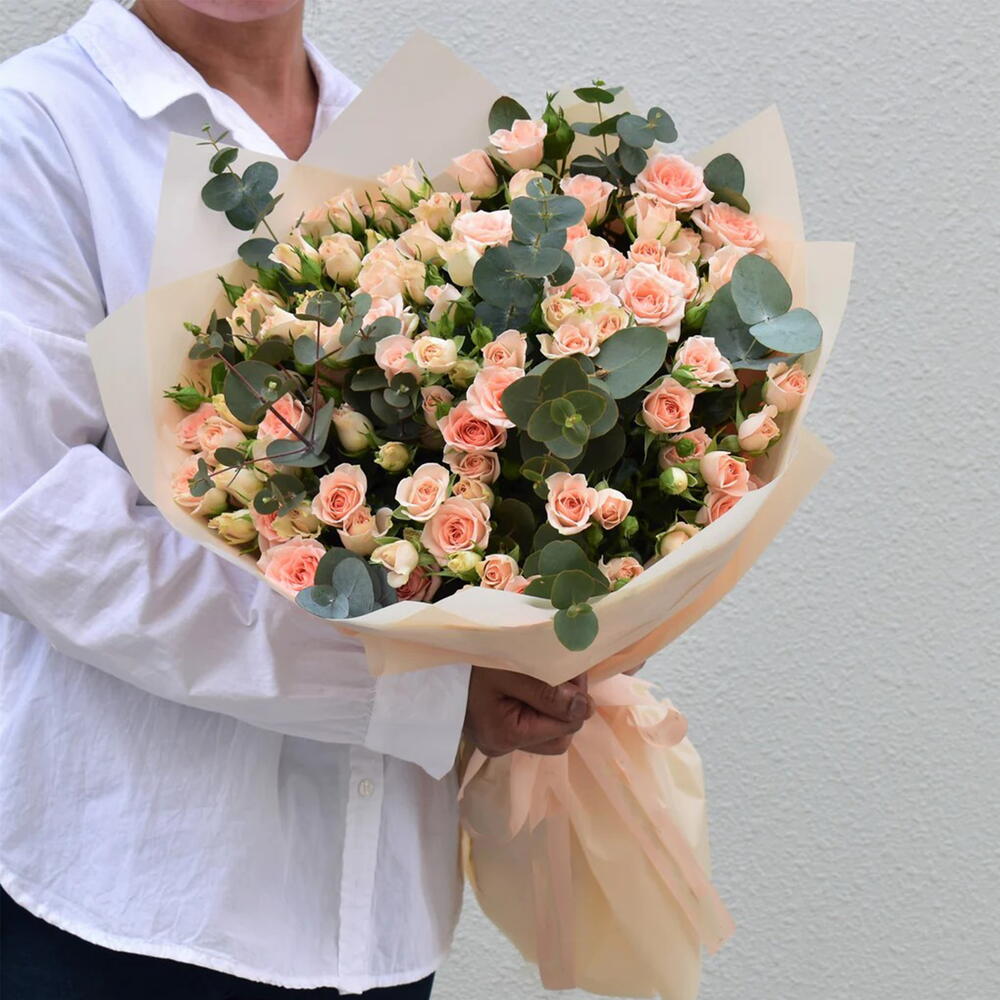 Букет розовых и персиковых мини-роз