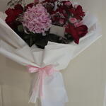 baby rose pink - 4 шт. red roses - 8 шт. гортензия - 1 шт. лимониум розовый - 4 шт.