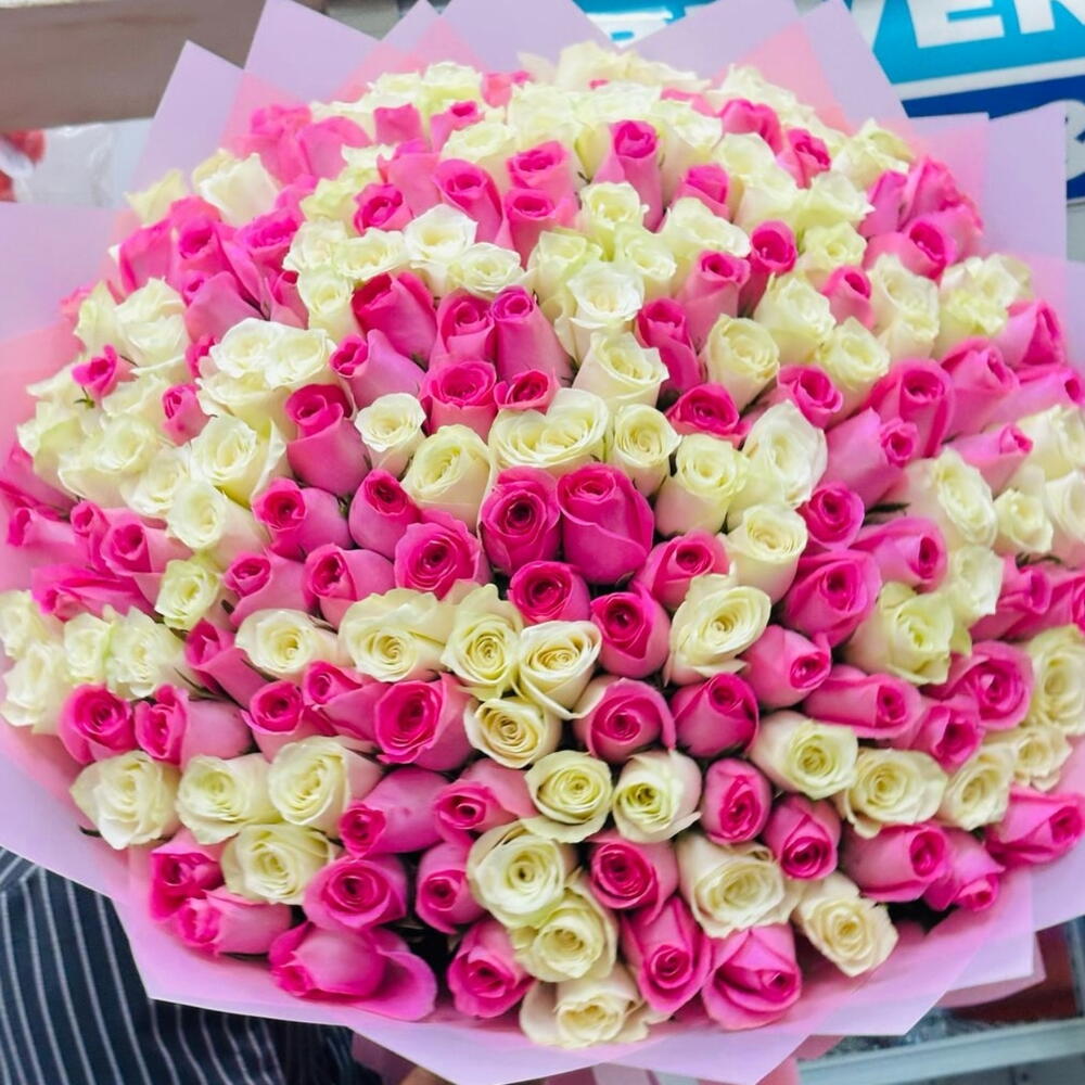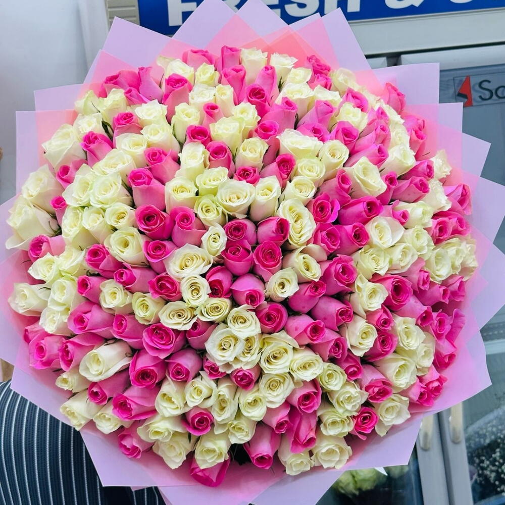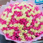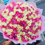 Изящный букет с нежным сочетанием розовых и белых роз, символизирующих любовь, чистоту и восхищение. Нежно-розовые розы добавляют нотку романтики и тепла, а безупречно белые розы приносят элегантность и умиротворение. Мастерски оформленный с пышной зеленью и красиво упакованный, этот букет идеально подходит для выражения искренних чувств по особым случаям, таким как годовщины, свадьбы, или в качестве продуманного жеста признательности.
