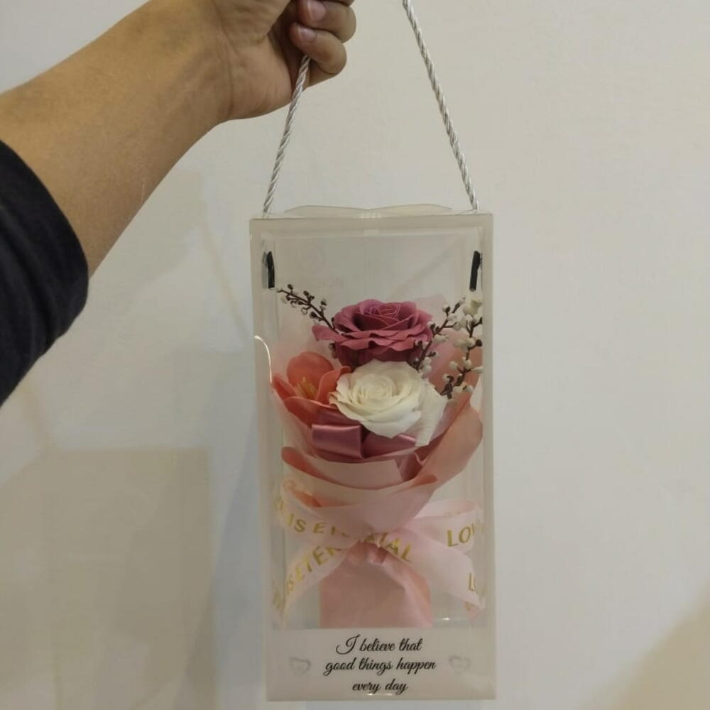 It’s a beautiful real red rose gifted by my son. I have loved it. The product looks great!!