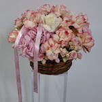 Basket - 1 шт. Pink rose - 18 шт. pink hydrangea - 2 шт. мини-розы - 5 шт. white roses - 5 шт.