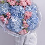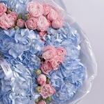 postcard - 1 шт. krizal - 2 шт. instruction - 1 шт. baby rose - 16 шт. paking - 2 шт. box with water - 1 шт. hudrangea blue - 7 шт. rebbon 2 - 2 шт.