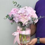Ваза «Розовые облака»: волшебное проявление грации Погрузите любое пространство в атмосферу безмятежности с нашей вазой «Розовые облака» – поистине сказочной композицией из четырёх нежно-розовых гортензий, элегантно помещённых в стильную вазу. Эта изящная композиция излучает очарование, изящество и нотку романтики, идеально подходящая для придания тепла и изысканности любому интерьеру. Каждый пышный розовый цветок гортензии символизирует искренние чувства, любовь и восхищение. Согласно японской легенде, эти пленительные цветы ассоциируются с благодарностью и искренними чувствами, а их нежные лепестки часто сравнивают с бьющимся сердцем. Ваза «Розовые облака» – идеальный выбор для выражения глубокой привязанности, празднования особых отношений или просто для того, чтобы украсить ваш дом или офис своей неземной красотой. Основные характеристики: Четыре нежно-розовых гортензии: крупные, похожие на облака цветы создают роскошную и нежную атмосферу. Элегантная ваза: тщательно подобранная, чтобы подчеркнуть природную красоту гортензий. Символическое значение: символизирует изящество, восхищение и искренние чувства. Универсальный декор: идеально подходит для гостиных, спален, обеденных столов или в качестве подарка. Ручная композиция: изготовлена нашими опытными флористами в Дубае, чтобы гарантировать потрясающий вид. Хотите ли вы создать романтическую атмосферу, привнести ощущение спокойствия в свое окружение или удивить близкого человека по-настоящему значимым жестом, ваза «Розовые облака» обладает вневременной привлекательностью. Ее нежные оттенки и изысканный внешний вид оставят неизгладимое впечатление, превратив любой момент в драгоценное воспоминание. Закажите вазу «Розовые облака» сегодня с надежной доставкой цветов по всему Дубаю, и пусть ее изящное очарование украсит ваше пространство.
