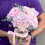 Ribbon - 1 шт. glass vase - 1 шт. pink hydrangea - 4 шт.