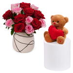 Отпразднуйте любовь и элегантность с нашим букетом из розовых и красных роз с коричневым плюшевым мишкой, красиво представленным в стильной розовой керамической коробке. Эта очаровательная композиция сочетает в себе страстные красные розы с нежными, мягкими розовыми, создавая идеальный баланс романтики и нежности. Прочная, многоразовая керамическая коробка добавляет современный и роскошный штрих, делая этот букет идеальным подарком на День святого Валентина, годовщину или любой другой трогательный случай. Основные моменты: Свежие красные и розовые розы для яркого, романтического сочетания Представлен в многоразовой белой керамической коробке Элегантная композиция для изысканного подарка Доставка с заботой Идеально подходит для Дня святого Валентина, годовщины или особых сюрпризов Современное прочтение классической романтики: розовые и красные розы в шикарном керамическом объятии.