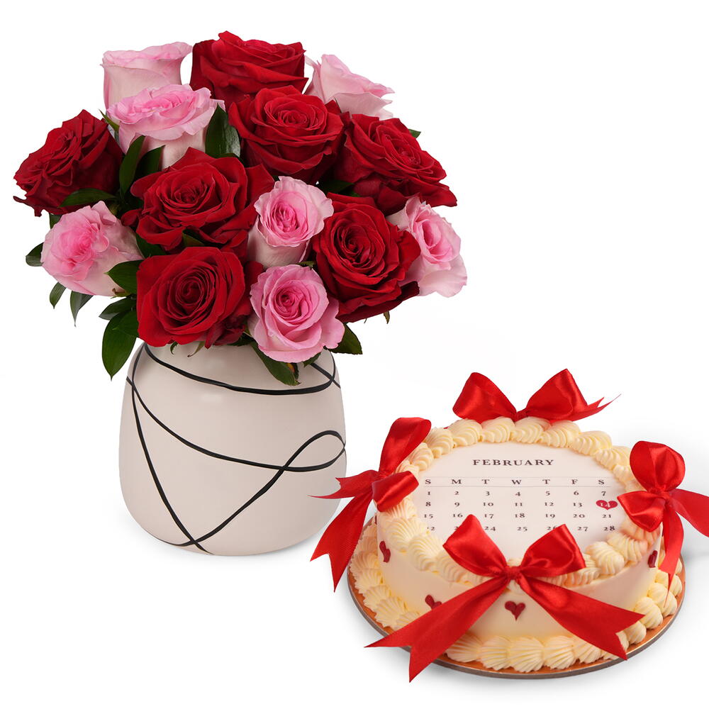 red roses - 7 шт. pink roses - 6 шт. торт красный бархат - 500 гр.