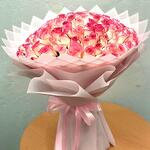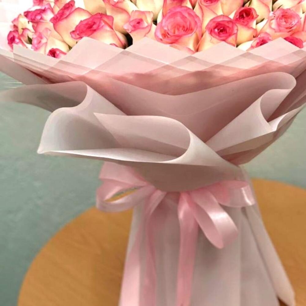 розовая роза джумия - 101 шт. светло-розовая обложечная бумага - 12 шт. игрушка со светло-розовой лентой - 1 шт.