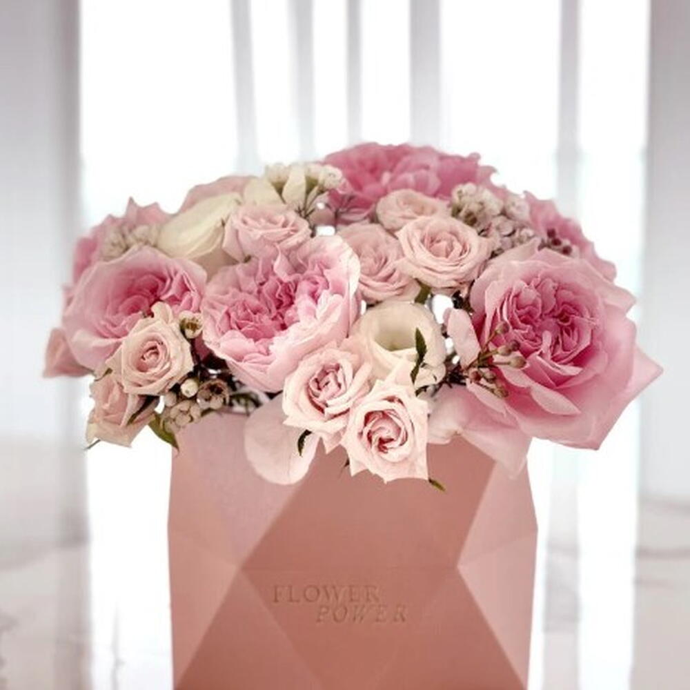 Изящная и очаровательная композиция в коробке, сочетающая в себе нежную красоту розовых роз и изысканную текстуру эустом (лизиантусов). Это изящное сочетание вызывает чувства нежности, радости и восхищения. Это идеальный и продуманный подарок на день рождения, для выражения сочувствия, поздравлений или просто чтобы поднять кому-то настроение и сделать день ярче, проявив нежную заботу.
