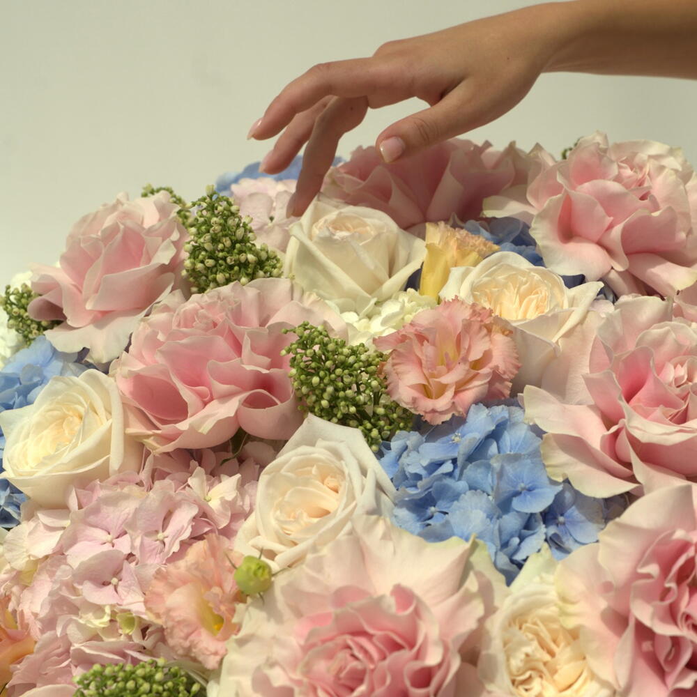 Эта потрясающая композиция «Цветы в коробке» – пленительное сочетание цветущей красоты. Она состоит из 5 ярких зелёных скиммий, 8 романтичных розовых роз, 8 элегантных белых роз сорта «ОХара» и микса из 6 прекрасных гортензий разных цветов. Эти цветы элегантно оформлены, создавая захватывающее дух зрелище, которое доставит истинное наслаждение. Такой подарок – это не просто коробка цветов; это целая коробка, полная радости, любви и признательности. Идеально подходит для любого случая, от дня рождения до годовщины, или просто чтобы поднять кому-то настроение.