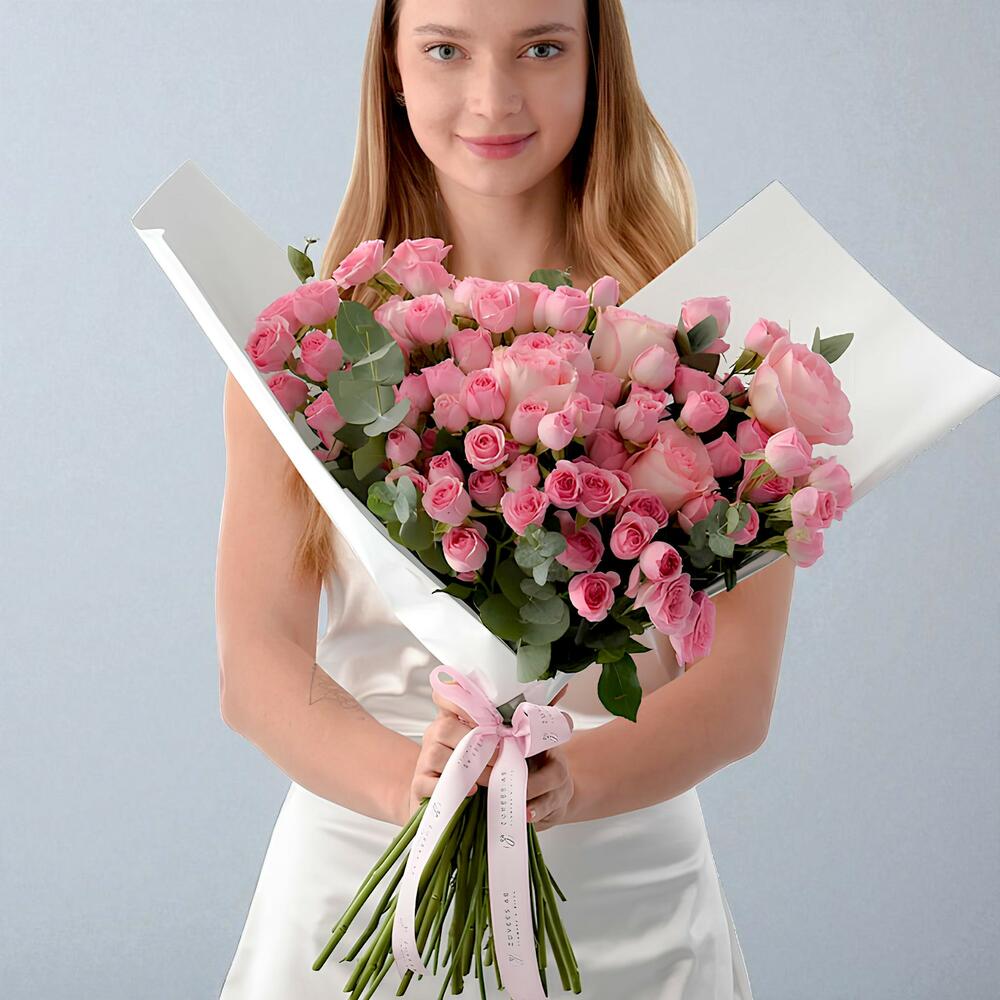 Отпразднуйте красоту и изящество с нашим букетом «Розовое совершенство» — очаровательной композицией, которая пленит всех. Этот букет, упакованный в два слоя белоснежной бумаги и украшенный изящной розовой лентой, излучает элегантность и женственность. Идеально подходит для дней рождения, годовщин или просто для выражения искренней признательности.