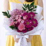 Яркий и женственный букет, полный насыщенных розовых оттенков. Создан из потрясающих розовых гербер, кустовых роз, альстромерий, гвоздик и роз насыщенного розового цвета, дополнен свежими зелеными цветами и упакован в элегантную белую обертку с атласной лентой. Идеально подходит для дней рождения, годовщин, поздравлений или романтического сюрприза. Герберы (ярко-розовые): 4 стебля Розы (темно-розовые): 4 шт. Миниатюрные розы / кустовые розы (светло-розовые): 4 стебля Гвоздики (розовые): 2 стебля Альстромерии (розовые): 2 стебля Зелень: 5 стеблей Примечание к заказу: Бесплатная печать поздравительной открытки включена в каждый заказ. (Пожалуйста, напишите ваше сообщение для открытки при оформлении заказа.) Изменение цвета цветов: Вы можете запросить изменение цвета цветов в соответствии с вашими предпочтениями. Это зависит от наличия и может меняться в зависимости от ежедневного запаса. Дополнительные опции: Вы можете добавить такие предметы, как: Воздушные шары, буквы, цифры, шоколад, духи и подарочные товары (по желанию). Гарантия свежести: Мы всегда используем свежие цветы и гарантируем высочайшее качество композиций.