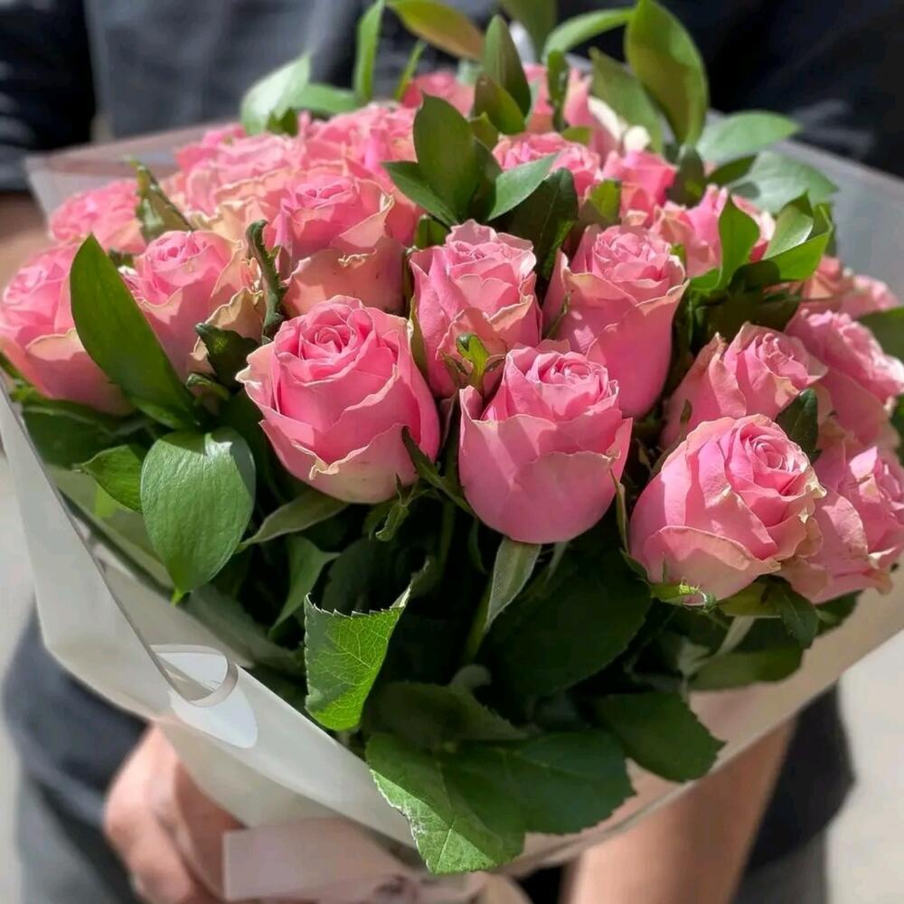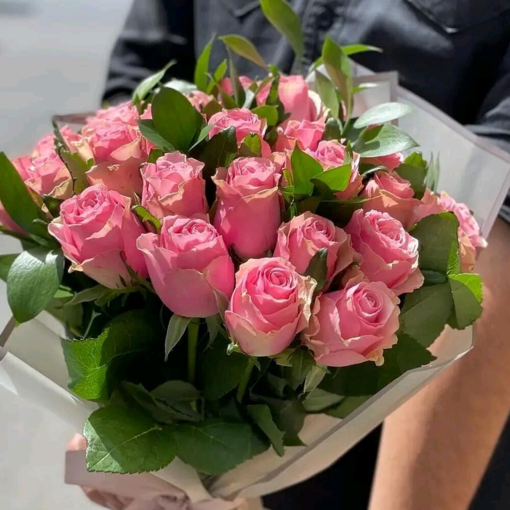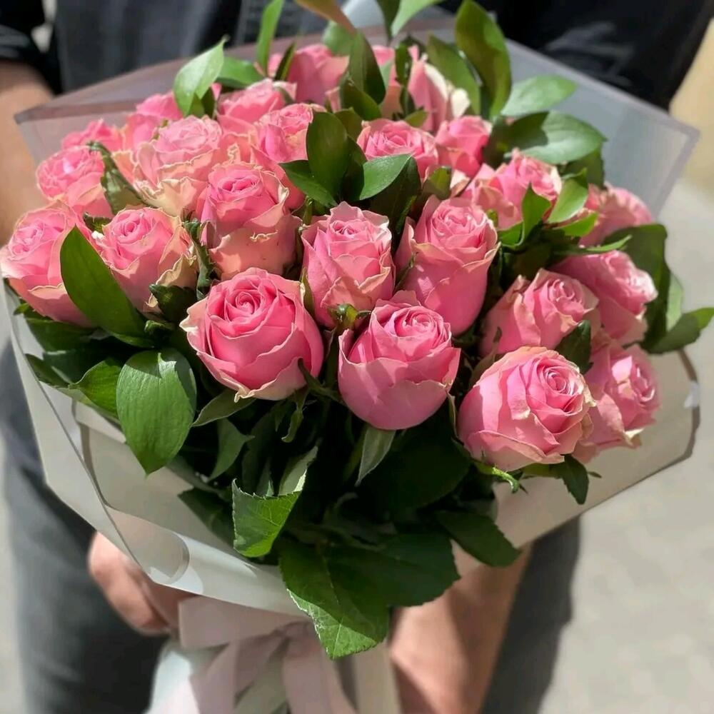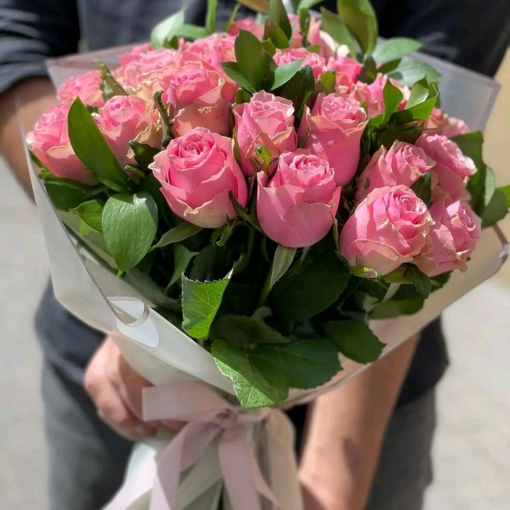 Pink rose - 23 шт. ruscus israel - 8 шт.